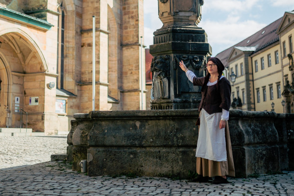 Auf ihrem Rundgang durch die historische Innenstadt erzählen der Bayreuther Bierkutscher oder die Bayreuther Brauermagd viele "Gschichtla", die sich rund um den Gerstensaft ranken und nehmen die Teilnehmer mit zu längst vergessenen Brauereien und besonderen Orten der Bierstadt Bayreuth.
